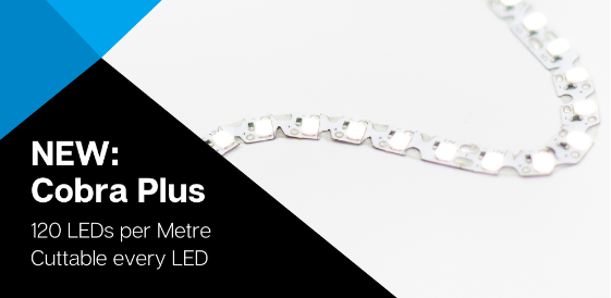 Your favourite Cobra LED strip has had an upgrade! Cobra Plus is our new bendable LED strip light that has an incredible 120 LEDs per metre and is CUTTABLE EVERY LED!