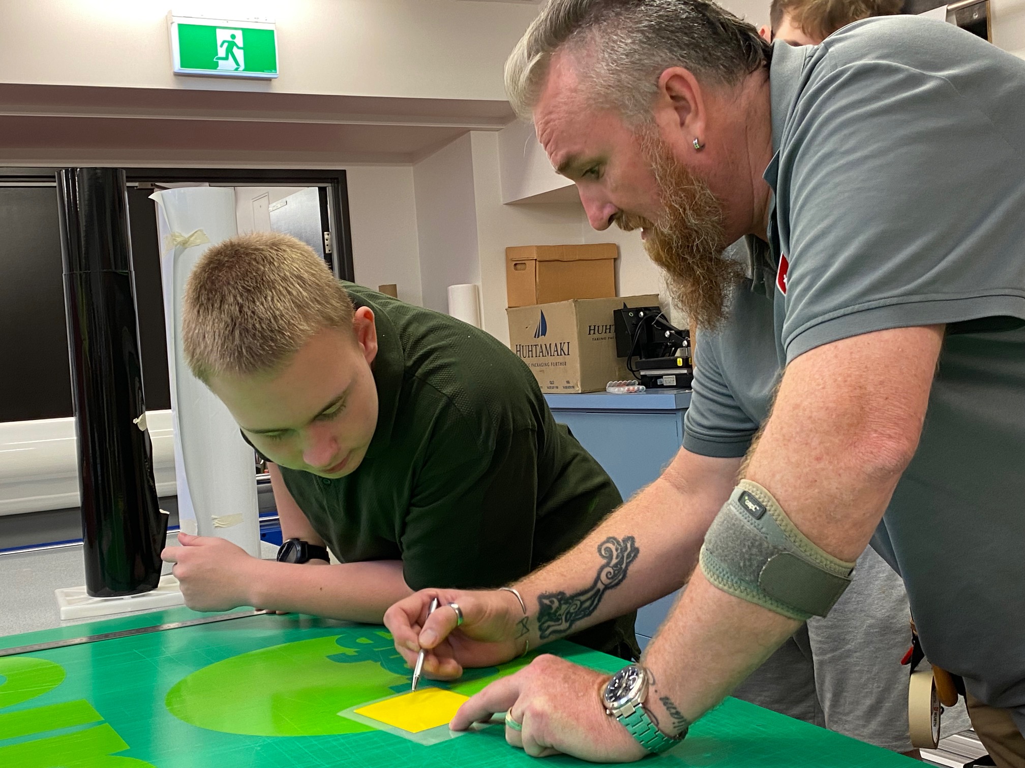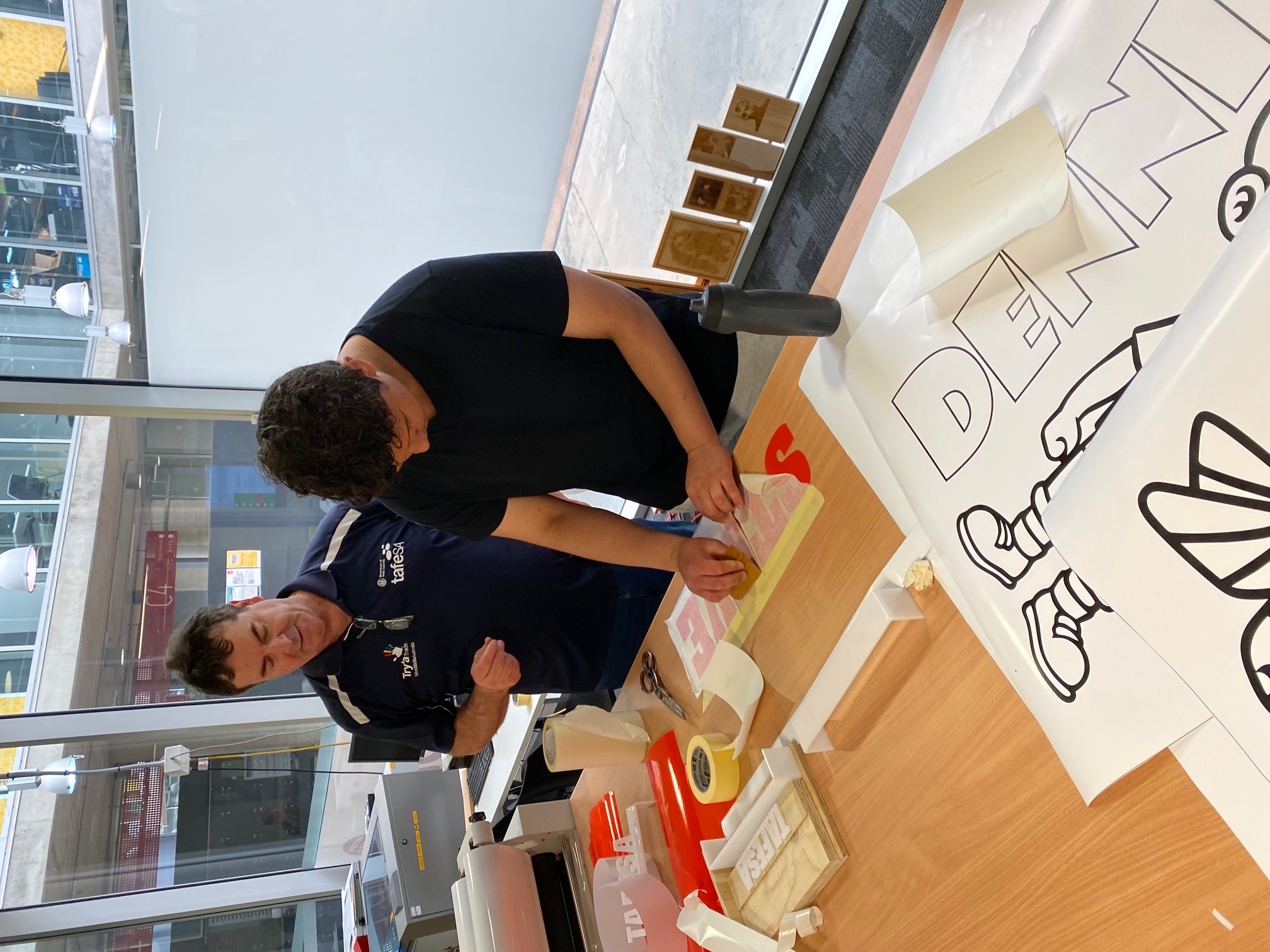 Steve Fogarty (TAFE SA) instructing student on vinyl application