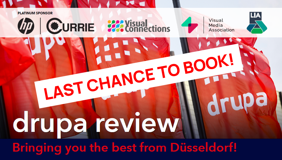 17-Jun-2024The world’s most exciting and expansive show for print and graphic communications has just concluded and our team has been on the ground, gathering all the information on trends, technologies, innovations and future insights – and you can catch up with all the latest, and connect with your fellow Visual Connections Members, at our exclusive drupa Review dinners in Sydney this Thursday 20 June and Melbourne next Tuesday 25 June.