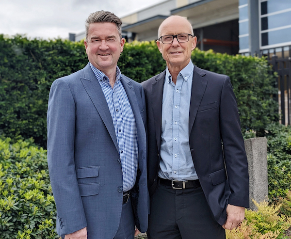Roman Beeler (right) with his successor as Country Manager for Muller Martini Pty Limited, Ian Sampson (left).